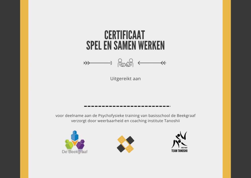 Als afsluiting ook nog een mooie oorkonde ter bevestiging van deelname, wat een leuke groep o les aan te geven.